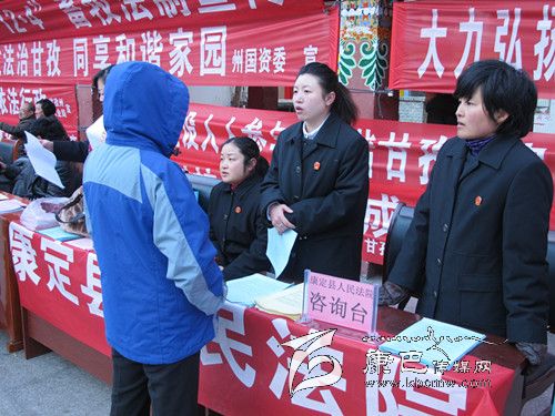 12月4日是第13個全國法制宣傳日。當天上午,在康定縣情歌廣場,康定片區(qū)公檢法司、勞動、旅游、林業(yè)、交通、民政等部門聯(lián)合開展普法和法律咨詢活動。