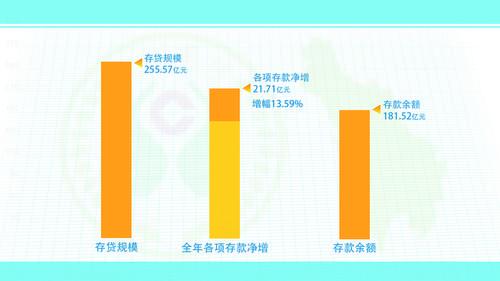 ——存貸規(guī)模高速增長。截至2017年末,甘孜農(nóng)信存貸規(guī)模255.57億元,全年各項存款凈增21.71億元,增幅13.59%,位居全州銀行業(yè)金融機構(gòu)第一位,余額達到181.52億元,服務(wù)地方經(jīng)濟的實力進一步增強;各項貸款凈增10.79億元,增幅17.34%,余額達到74.05億元,有力支持了經(jīng)濟社會發(fā)展。