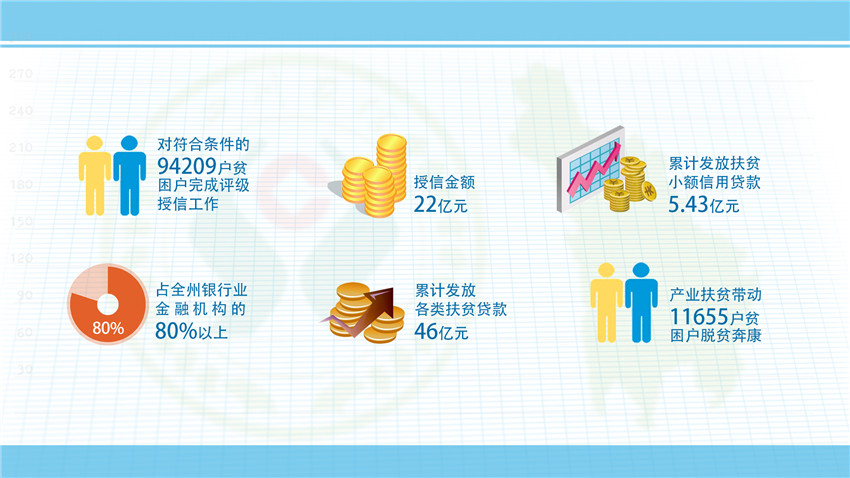 ——強化信貸扶持。緊緊圍繞全州脫貧退出總體目標,打破各縣劃分片區(qū)、劃分任務(wù)的局面,使脫貧攻堅工作從行政手段調(diào)整到市場競爭和民生工程兼顧,堅持“三個一百”——即百分百對符合條件的建檔立卡貧困戶進行評級授信,授信面達到100%;百分百滿足貧困戶有效信貸需求;百分百滿足產(chǎn)業(yè)帶動扶貧項目有效信貸需求,加強與18個縣黨委政府的溝通對接,瞄準每個縣的地方特產(chǎn)產(chǎn)業(yè),因地制宜,為每個縣量身打造“一縣一策”的金融服務(wù)方案,累計發(fā)放各類產(chǎn)業(yè)、項目帶動扶貧貸款20.69億元。