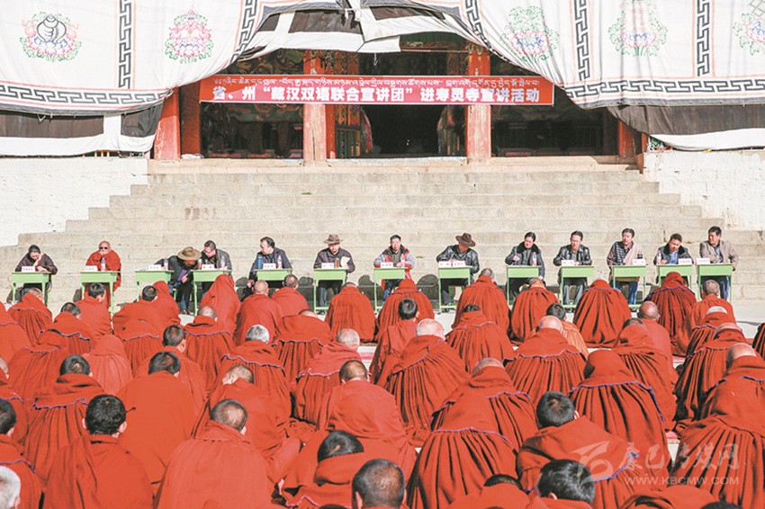 在法律進(jìn)寺廟方面,我州持續(xù)深化法律進(jìn)寺廟“四進(jìn)七有”活動,健全完善寺廟法治宣傳欄、法律圖書角、法律服務(wù)聯(lián)系點(diǎn)、法律明白人管理等工作制度,建成寺廟法治宣傳欄598個、圖書角504個、法律服務(wù)聯(lián)系點(diǎn)489個,培訓(xùn)培養(yǎng)寺廟“法律明白人”947人;組織開展《憲法》《刑法》《刑事訴訟法》《國家安全法》《治安管理處罰法》《道路交通安全法》《宗教事務(wù)條例》進(jìn)寺廟專項(xiàng)活動,全州共開展法律入寺宣傳1900余場次,覆蓋寺廟532座、僧尼8萬余人次。