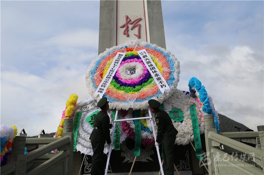 一束鮮花寄哀思。祭掃活動在悲壯的哀樂聲中開始,各單位、各部門向革命烈士紀(jì)念碑敬獻(xiàn)了花圈。