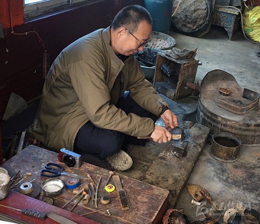 河坡民族金屬手工技藝歷史悠久,盛行于藏民族英雄嶺·格薩爾時期,至今大約有1300多年的歷史。調(diào)研組每到一處,都要與手工藝人們進(jìn)行深入細(xì)致的交談。在手工藝傳承人布洛家中,見到了正在忙碌制作各種手工藝產(chǎn)品的場景,專家們立即拿出相機(jī)開始拍照。同時抑制不住激動的心情,參加到制作中去,有人一邊手持工具現(xiàn)場體驗河坡民族手工藝的鍛造,一邊饒有興致地說:“這里好似人間仙境,就如站在云端學(xué)手藝”。