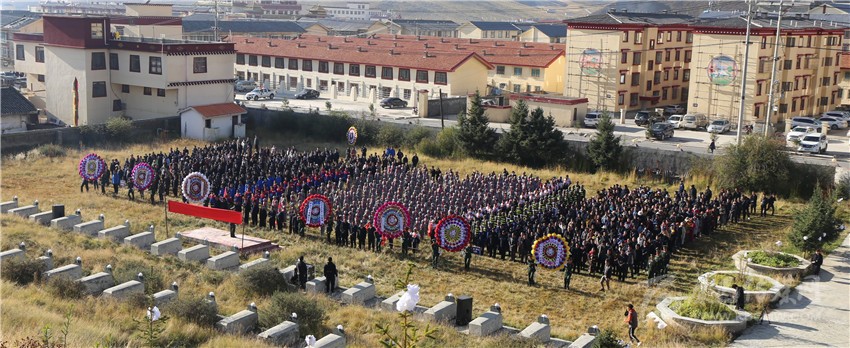 本網(wǎng)訊 為深切緬懷革命先烈的豐功偉績,虔誠祭奠革命先烈的不朽英魂。9月30日,色達(dá)縣舉行“不忘初心,牢記使命”主題教育暨新中國成立70周年烈士紀(jì)念日公祭活動。整個(gè)公祭活動莊嚴(yán)、肅穆而隆重,縣四大家領(lǐng)導(dǎo)班子成員、縣級各單位、各部門、省州屬行政企事業(yè)單位、縣屬企事業(yè)單位、全縣中小學(xué)生,縣人武部、縣中隊(duì)、縣消防隊(duì)、駐軍部隊(duì)1200余人來到城區(qū)烈士陵園敬獻(xiàn)鮮花和花籃,瞻仰烈士紀(jì)念碑,表達(dá)對先烈的無限敬仰和深切哀思。