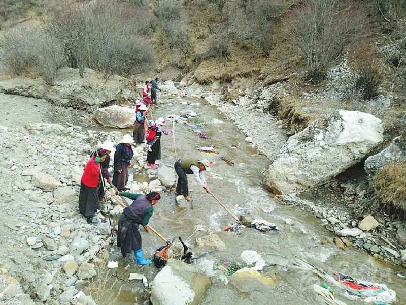 說干就干,黃先明帶領(lǐng)駐村工作隊(duì)隊(duì)員和村兩委班子成員不畏嚴(yán)寒,首先把全村的道路、公共設(shè)施場(chǎng)地進(jìn)行了清掃,把道路兩邊的小土堆全部鏟平并種上花草,把村民房前屋后的柴火、廢料等重新清理并制定擺放標(biāo)準(zhǔn)。在河道整治中,黃先明帶領(lǐng)村干部沖在前面,對(duì)不容易清理到的垃圾,還跳到河里去撿。3月的高原還很冷,鞋子很快被交納河水打濕,但大家全然不顧。“黃隊(duì)長(zhǎng)都帶頭干,我們更要努力?!苯患{村村民巴登鄧珠說。