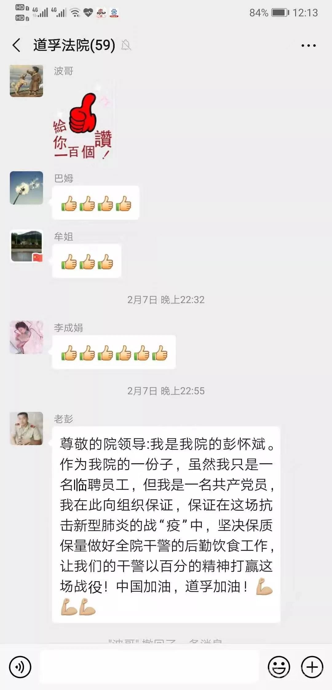 彭懷斌向院黨組作出鄭重承諾:“作為我院的一份子,雖然只是一名臨聘員工,但我是一名共產(chǎn)黨員,我在此向組織保證,保證在這場抗擊新冠肺炎的戰(zhàn)‘疫’中,堅決保質保量做好全院干警的后勤飲食工作,讓我們的干警以百分的精神打贏這場戰(zhàn)役!中國加油!道孚加油!” 特殊時期,為了保證食材的絕對安全,廚房沒有幫手,所有工序都需要他一手一腳完成,任務有多重可想而知。