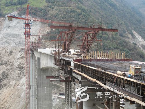 3月12日上午,記者在大崗山水電站S211復(fù)建公路工程(瀘石路)B標段跨徑為296米的大渡河大橋(又名灣東大橋)的施工現(xiàn)場看到,高聳的吊裝機隆隆作響,T梁上鋼筋林立;戴著安全頭盔的施工人員正在精心“編織”鋼筋網(wǎng)陣,掛籃懸臂也同時在澆筑施工,大橋已初具雛形。連接大橋的聯(lián)合村隧道內(nèi),同樣一派忙碌的場面,挖掘機、運輸車等各類工程車往來進出,施工便道上馬達聲轟鳴;正在洞口緊張焊接的鉆孔臺架上劃出一道道閃亮的弧線;隧道內(nèi)燈火通明,工人們正有條不紊地在洞壁上鉆孔……
