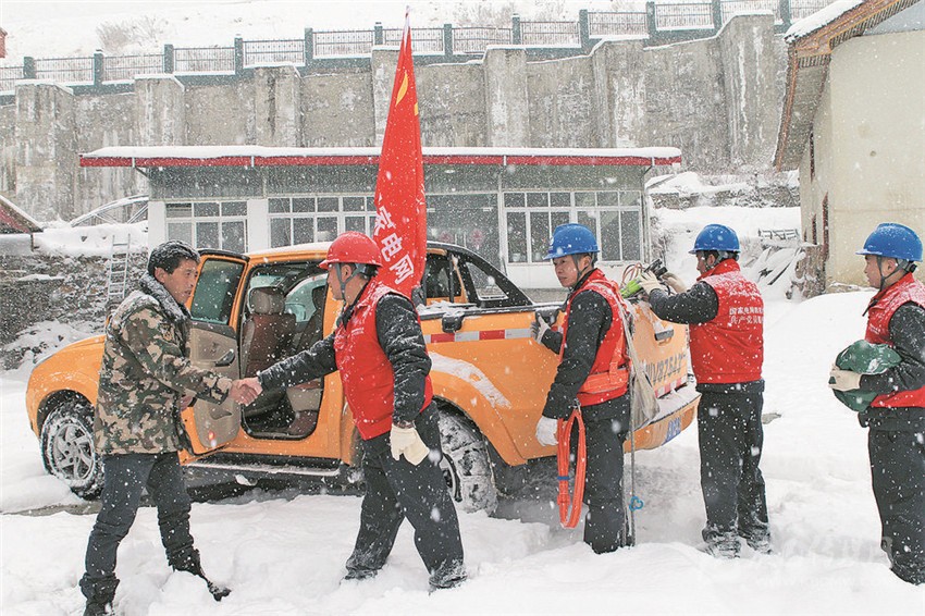 黨員服務(wù)隊在康定2·21雪災期間冒雪前往搶修。
