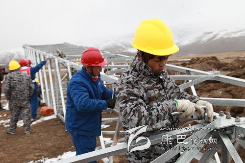 石渠縣海拔高,長冬無夏,空氣含氧量僅為成都平原的45%,電力建設面臨著“高原高寒缺氧、生態(tài)環(huán)境脆弱、凍土區(qū)沼澤區(qū)施工”等世界性難題。在這里走路稍微快一點都要大口喘氣,更何況在高山雪地上施工,搬運建材,其施工難度可想而知。石渠至洛須110KV工程是國網成都供電公司承擔“電力天路”工程項目中唯一一條110kV電壓等級線路工程,是連接石渠變電站和在建的110kV洛須變電站的主要電力通道,線路全長為64.268km,新建鐵塔187基,沿線海拔高度為3300~4800m,線路多在雪山脊梁及斜坡走線。4月的石渠高原,依然是冰天雪地,寒風呼嘯,在石渠至洛須110KV線路87基塔基澆筑現場,這里海拔4500多米,然而這里卻是一片熱火朝天的場景,一頂頂黃色安全帽下,急促呼吸冒出的熱氣讓每一個人的面目更加模糊?,F在內地正是春暖花開,春意盎然的季節(jié),而我們的施工現場確實冰天雪地,為了讓廣大農牧民早日用上電,四川電建工人們克服高寒、缺氧等惡劣自然條件,正在抓緊施工。110kV線路有的建設段施工人員靠相互扶持摸索上山,有的施工點一個來回要走6個多小時,材料、工器具都必須靠驢隊及索道運輸。為了搶工期節(jié)約時間工程建設者克服嚴重的高寒缺氧等惡劣的自然條件吃住在雪山上,累了、呼吸困難時吸口氧,渴了吃一把身邊的“雪糕”。到今年4月30日,“電力天路”石渠境內工程進度已完成工程總投資的40%。