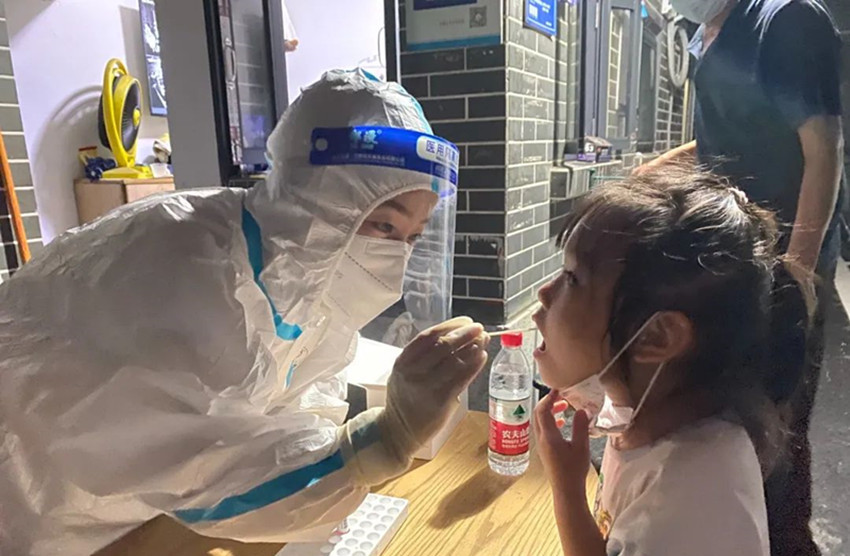 圖為醫(yī)務(wù)人員正在開展核酸檢測采樣。