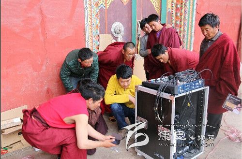 “這是功放機(jī),這是DVD,這里是話筒插口,音量大小就在這里調(diào)節(jié)……”在德格縣溫拖鄉(xiāng)滿金寺的大殿外,僧人白扎正專心記錄著音響調(diào)音臺的使用方法,并用自己的手機(jī)全程錄下了整個(gè)操作流程。
