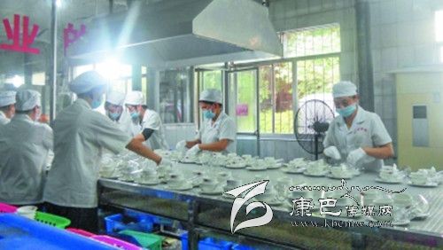 6、包裝。經(jīng)過消毒后的餐具被送到約2米長的綠色傳送帶上,工人先用手把餐具按照包裝要求擺放好。之后送到包裝機器,用包裝膜封口包裝。