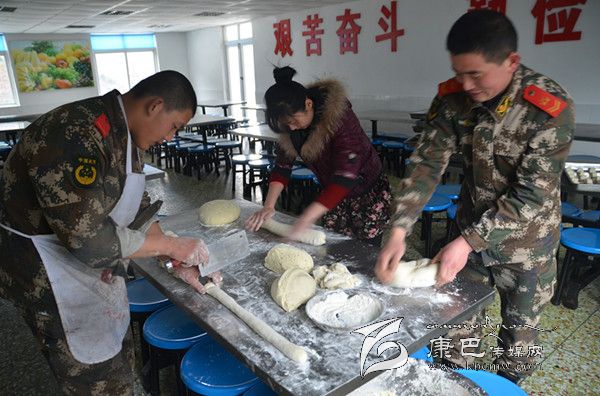時值大暑季節(jié)的川西高原依然寒風(fēng)凜冽,一抹朝陽灑在山頂積雪上,散發(fā)出黃白相間耀眼的光芒。此時,工化中隊廚房里鍋碗瓢盆開始演奏新一天的樂章,幾名炊事員忙來忙去,只見中隊長杜培峰的妻子李曉霞正蹲在門口幫著洗菜,“小杜跟我說中隊的炊事員最辛苦,讓這些小伙子炒菜做飯,真是難為他們了……”,四川妹子李曉霞用手擦了擦額頭的汗珠對筆者說。正說著,炊事班長跑過來一把端走李曉霞面前的菜盆:“嫂子,你這么早起來瞎忙活什么?。磕愀忻斑€沒好呢,快回去休息吧!”