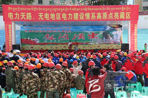 本網(wǎng)訊(見習(xí)記者 陳雪峰 文/圖) 8月29日,由中共甘孜州委、甘孜州人民政府和國(guó)網(wǎng)四川省電力公司主辦,州委宣傳部、州發(fā)改委和中共甘孜縣委、甘孜縣人民政府共同承辦的“電力天路”暨無(wú)電地區(qū)電力建設(shè)慰問(wèn)演出活動(dòng)在甘孜縣舉行。州政府副州長(zhǎng)張平森和國(guó)網(wǎng)四川省電力公司副總經(jīng)理丁燕生等蒞臨慰問(wèn)演出現(xiàn)場(chǎng)。