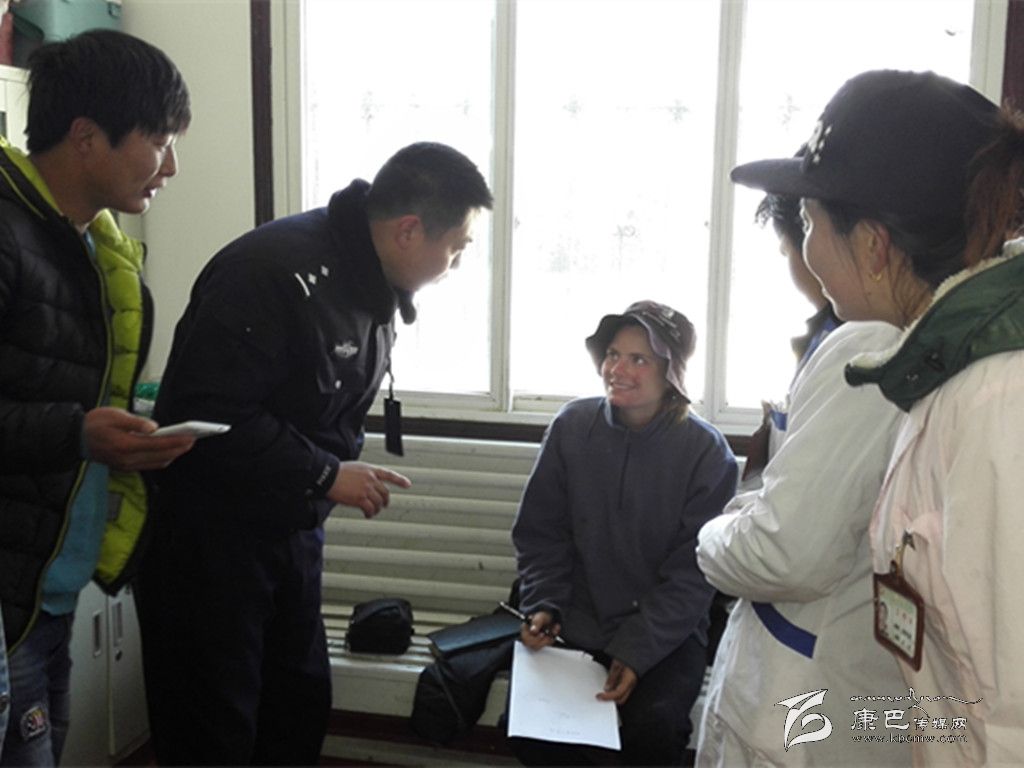 當(dāng)日中午12時(shí),開(kāi)展完“結(jié)對(duì)認(rèn)親”工作返回桑堆鎮(zhèn)派出所集合的國(guó)保大隊(duì)民警和看守所民警,忽然看見(jiàn)一名神色疲憊的外國(guó)女游客推著自行車(chē),正在派出所門(mén)前與民警比劃著什么?有一定英語(yǔ)基礎(chǔ)的民警見(jiàn)狀后圍了上去,主動(dòng)給派出所民警“解圍”。但是,她說(shuō)的外語(yǔ)并不流暢,交流起來(lái)十分困難。經(jīng)過(guò)手勢(shì)比劃,加上多方英語(yǔ)對(duì)話(huà),民警得知了她是比利時(shí)人,名叫ILONA,是一名資深的騎游愛(ài)好者,已騎自行車(chē)游覽了大半個(gè)中國(guó),準(zhǔn)備騎自行車(chē)回國(guó)。當(dāng)日正從稻城縣騎自行車(chē)出發(fā)前往理塘縣,但到了桑堆鎮(zhèn)后感覺(jué)身體難受,體力不支,難以繼續(xù)堅(jiān)持前行,就打算在當(dāng)?shù)卣乙粋€(gè)衛(wèi)生院先檢查身體。比利時(shí)人平時(shí)主要講的是法語(yǔ),所以英語(yǔ)講起來(lái)有點(diǎn)不順暢。當(dāng)時(shí),國(guó)保大隊(duì)民警由于有其他要事在身,不得不先行離開(kāi),看守所民警蘇適英語(yǔ)水平不錯(cuò),便主動(dòng)帶她到鎮(zhèn)衛(wèi)生院看病。
