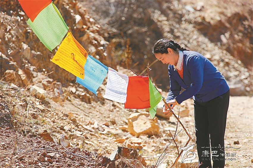 到達(dá)益西村布乃格時(shí),杜勒突然發(fā)現(xiàn)前面有十多米路段已經(jīng)被洪流沖垮了一半。“停車!停車!不能再往前開了!”坐在副駕駛座上的杜勒急忙叫住丈夫,從身上斜挎的小包里拿出五六面風(fēng)馬旗,拉開車門,幾步?jīng)_到了垮塌路段跟前。“不要再過(guò)去了,水里有石頭,一會(huì)兒被大水沖走了你就完了!”仁孜跟著跳下車,追著她喊??墒嵌爬詹活櫿煞虻暮艉埃自诳逅访娴倪吘?,伸出雙手將穿滿風(fēng)馬旗繩子的一端系在路邊山壁的樹枝上。她身子傾斜,右腳伸直踩在被河水沖成斜坡的路基上,左腳彎曲踏著僅剩的一點(diǎn)路面,想將繩子綁得更加牢固。而風(fēng)馬旗卻不聽使喚的在風(fēng)雨交加中搖擺不定,杜勒心中此刻只有一個(gè)信念:風(fēng)馬旗上系著的是萬(wàn)千生命,無(wú)論如何也要綁牢實(shí)。“你是不是瘋了?路基都空了,要是垮下去你被大水沖走了怎么辦?”仁孜話音剛落,杜勒右腳踩著的那塊泥土突然整塊塌了下去。仁孜一把抓住她的手臂,把她拽了上來(lái)。“如果當(dāng)時(shí)是她一個(gè)人,那肯定沒命了!”仁孜把她拖回車上才發(fā)現(xiàn),杜勒卷起褲管兒的腿上布滿了青青紫紫的淤痕,雙腳顫顫巍巍,幾乎站不穩(wěn)?;氐娇h城后,醫(yī)生告訴杜勒短時(shí)間內(nèi)不能走路,要多休息。可是,當(dāng)天下午,杜勒趁仁孜上班,自己找了一根竹棍子拄著,又趕到下一個(gè)坍塌路段做著重復(fù)的工作。