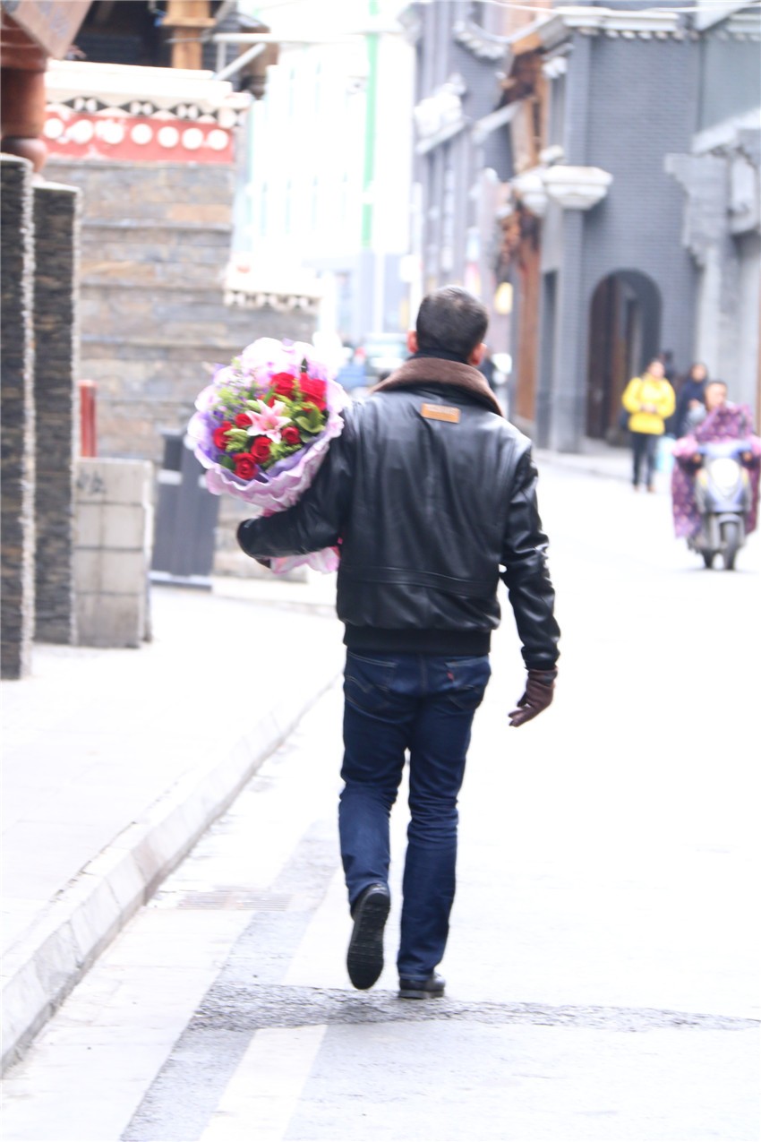 手上的玫瑰是我最真誠的愛意,匆匆的腳步是我幸福的憧憬。