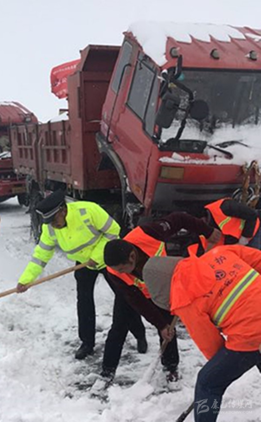 27日13時19分,前方記者傳回最新山頂?shù)缆繁Mㄇ闆r。州公路局已協(xié)調(diào)州本級、康定市和瀘定縣公路管理部門,出動3臺大型機具,投入54人次,推雪清障,并沿途鋪撒10余立方米防滑沙;交警部門有序疏導(dǎo)滯留車輛緩慢下山,武警戰(zhàn)士和其他相關(guān)人員全力清障保暢通。