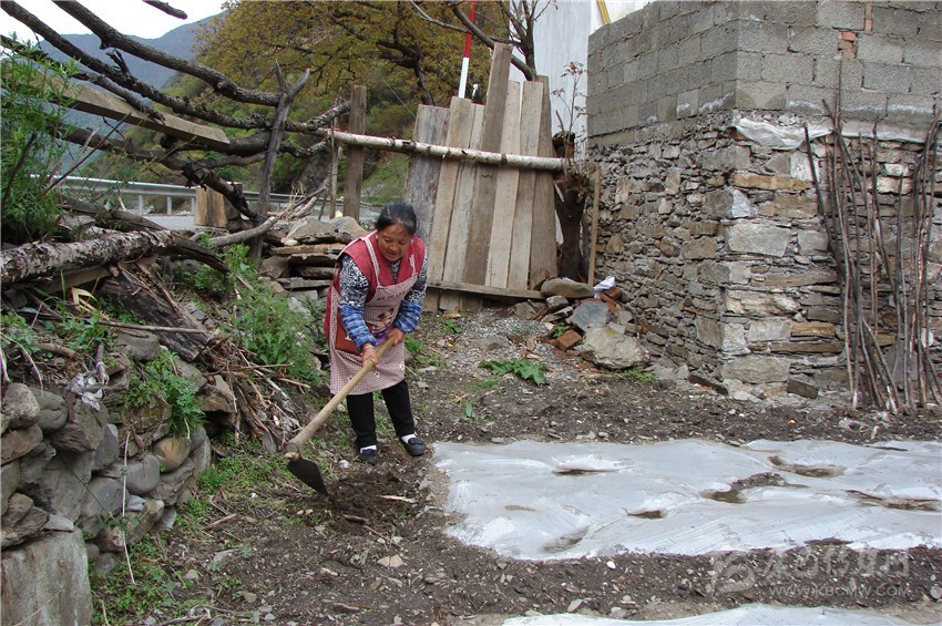 賀姚珍告訴記者,她這輩子經(jīng)歷過兩次沉重打擊,第一次打擊是丈夫的不幸去世,她19歲就從阿壩州金川縣嫁到了東谷鄉(xiāng)永西村,她的丈夫李孟元十分勤勞,打零工、挖藥材、砍木頭,幾年下來積攢了一筆不菲的存款,家境殷實,修建起一棟三層高的樓房,并購買了電視機。幾年來,三個孩子的先后出世,一家人其樂融融。80年代中期,她們一家成為人人艷羨的“萬元戶”。然而天有不測風云,人有旦夕禍福,有一天,李孟元和村莊中的幾位小伙子到山頂上砍木料,不幸被從柴火卷下山谷,當即昏死過去,昏迷了兩天兩夜才蘇醒過來,在這期間,賀姚珍精心護理,幾天之后,闖過“鬼門關(guān)”的李孟元就能拄著拐杖下地走路,幾個月過后,李孟元基本康復(fù)。一年后,李孟元感覺從右手手指尖傳來陣陣酥麻的感覺,在吃飯的時候,手里的筷子會莫名其妙的掉到地上,他也沒有在意,以為是勞累所致,然而后來這種酥麻的感覺越來越強烈,最后發(fā)展到雙腿上,有時候會突然摔倒。頸部有強硬的感覺,活動受限,頸部活動有彈響聲,疼痛常向肩部和上肢放射,手和手指有麻木、觸電樣的感覺。賀姚珍帶著他去醫(yī)院檢查,檢查結(jié)果出來后,李孟元和妻子抱頭痛哭,原來因為那次摔傷,頸椎處已骨裂,雖然愈合,但是在斷裂處有了骨質(zhì)增生的病癥,骨質(zhì)增生的位置是往里面長的,因此無法手術(shù),隨著骨質(zhì)增生的不斷增長,壓迫了神經(jīng),所以才會有酸麻和摔倒的現(xiàn)象發(fā)生。醫(yī)生建議只能運用保守療法進行治療。幾年來,李孟元和賀姚珍踏上了漫長的求醫(yī)之路,雖然經(jīng)多方治療,然而病情愈發(fā)嚴重,李孟元最終癱瘓在床。幾年里,為了給李孟元看病,他們花光了家里的所有積蓄,變賣了牲畜,然而還是杯水車薪,賀姚珍只好到親戚朋友家借錢,原本殷實的家庭最后變得債臺高筑。多方努力也沒有挽回丈夫的生命。賀姚珍處理完丈夫的后事后,撫育三個兒子的重擔就落在了她柔弱的肩上。從此,她背著厚厚的棉被到海拔五千米左右的雪山頂上挖藥材;推著載著幾百斤重礦石的架車在礦山上揮汗如雨的勞作;拿著斧頭到大山深處砍伐樹木……,為了給兒子們創(chuàng)造舒心的生活環(huán)境,她沒有逛過一次街,沒有買過一件新衣服。