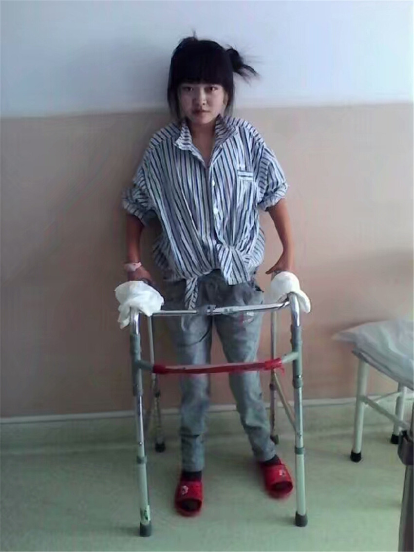 23歲時,深圳的楊先生爽快地幫助朱靈湊夠了手術(shù)費用。2013年9月,朱靈在親人的護(hù)送下,到北京接受了手術(shù)治療,手術(shù)很成功。但做牽引、吊腿、揉搓、重壓等康復(fù)訓(xùn)練,如遭酷刑,萬般痛苦,她曾想放棄。在病友和親屬的鼓勵下,她倚墻靠壁,憑借器具,大汗淋漓,通過一個多月的康復(fù)鍛煉,朱靈終于站了起來。