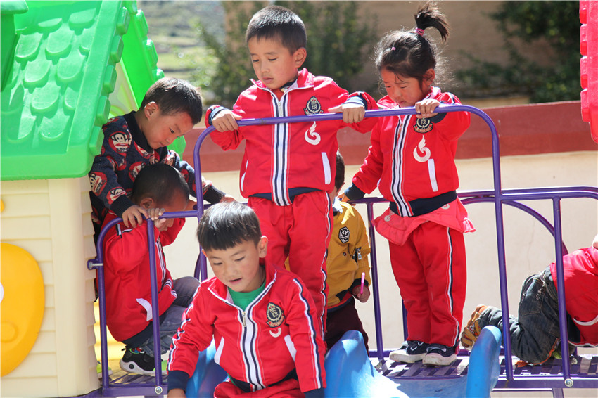 理塘縣濯桑鄉(xiāng)下汝村五歲的格絨澤西,去年9月就讀于下汝村幼兒園,現(xiàn)在簡(jiǎn)單的漢字、拼音、藏文字母能認(rèn)得到,從1可以數(shù)到20,唱兒歌跳藏舞特別開(kāi)心,這讓父親曲云十分高興,不然像以前只好在家中玩?;驇У椒拍恋牟輬?chǎng)、勞作的地里。每次父親帶她上縣城,格絨澤西都十分羨慕城里的孩子能背上小書(shū)包上幼兒園?!罢鏇](méi)想到,我家的小孩在村里就能讀幼兒園,還學(xué)到了知識(shí)?!鼻聘吲d地說(shuō)。