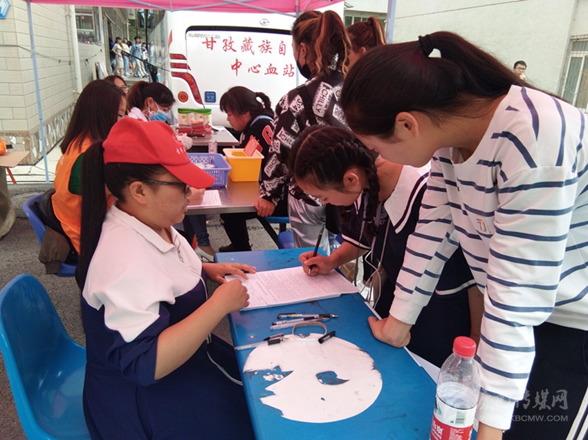 四川民族學(xué)院師生和志愿服務(wù)隊(duì)在校園內(nèi)開展無(wú)償獻(xiàn)血活動(dòng)。