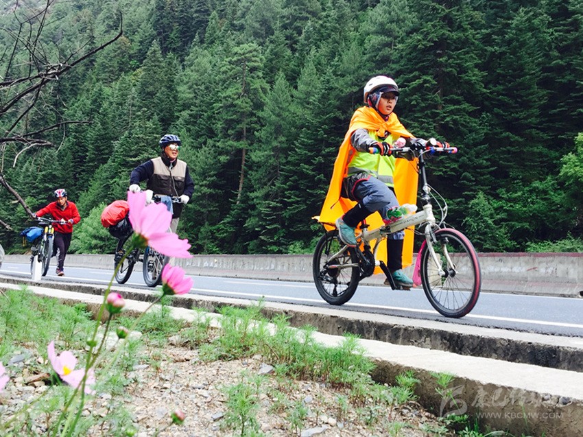 “我只是數(shù)以萬計川藏騎行大軍中的普通一員”,初遇劉志勇時,他正騎著折疊改裝自行車,吭哧吭哧地馱著一個渾身用熒光綠油紙,裹得密不透風的“蠶寶寶”,向著折多山二臺子觀景臺做著最后沖刺。