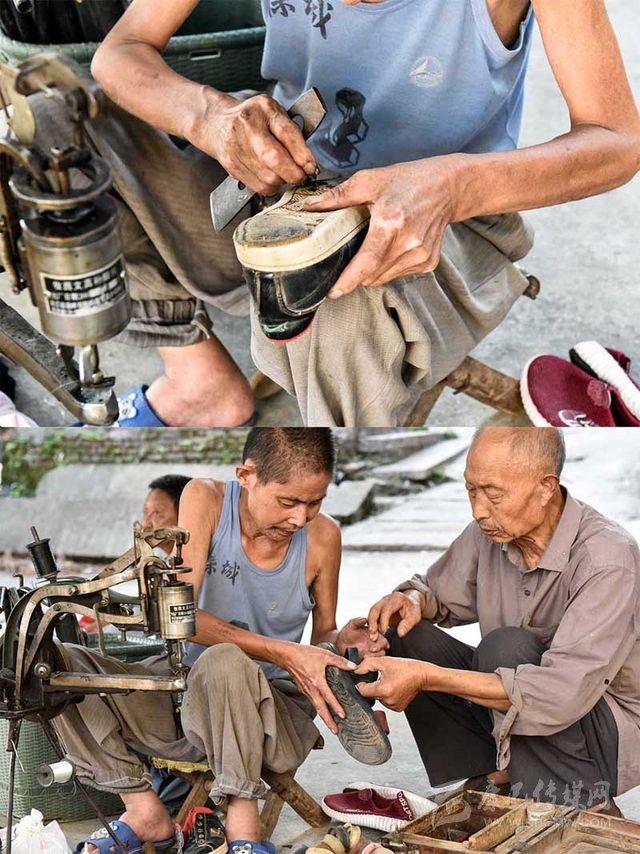 “三娃,今天來(lái)得早嘛!”尚未坐定,便有鄉(xiāng)鄰拿著鞋子走過來(lái),“鞋跟脫膠了,修一哈?!?/span>