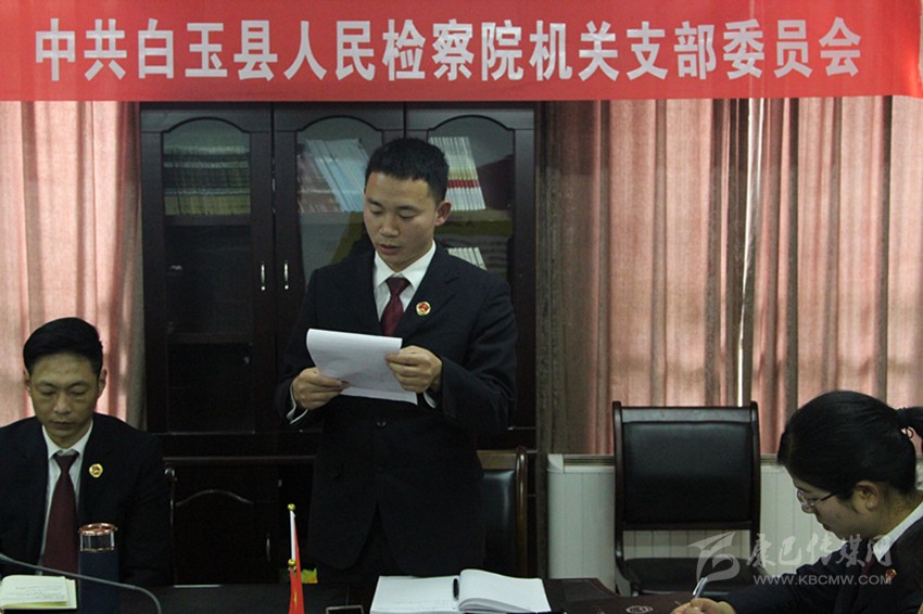 本網(wǎng)訊 近日,白玉縣人民檢察院黨支部召開接收預備黨員大會,討論了關于吸收秦偉同志為中共預備黨員的事宜。會議由該院黨支部書記王洪勇同志主持,除2名黨員抽調外出,該支部12名黨員、1名發(fā)展對象參加此次會議,2名黨外干部列席。