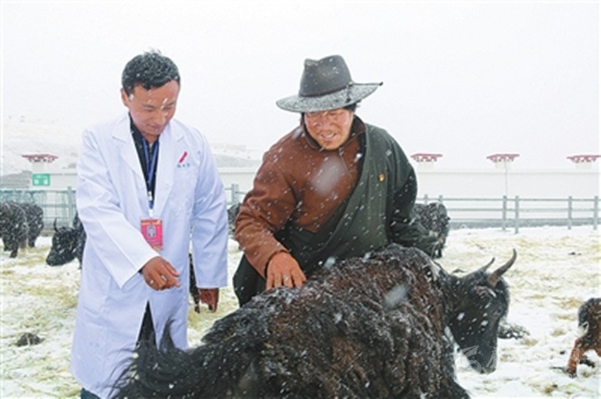 5月8日,甘孜縣達通瑪片區(qū)大雪飛揚。在茶扎鄉(xiāng)銀多村集體牧場,放養(yǎng)人員格絨正在給上百頭牦牛喂草料,他喜滋滋地說,通過牧民儲備和農(nóng)牧農(nóng)村局提供草料的方式,牦??梢园踩^冬。銀多村現(xiàn)代化集體牧場合作社成立一年多的時間,共出欄牦牛16頭,總收益67380元,除去20%預留金,村民有了一定的收入,而作為放牧人員,他管理了52頭牦牛,一年有1.2萬元的收入。