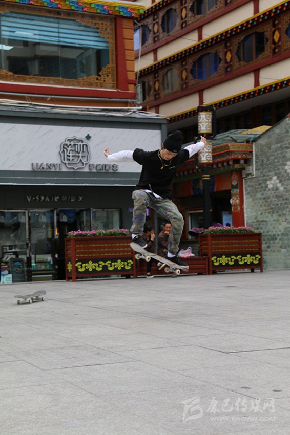 6月22日,世界滑板日,康定市情歌廣場(chǎng),一群滑板少年舉著“GOTTA’318”大旗,正在演繹精彩。他們時(shí)而團(tuán)隊(duì)作業(yè),時(shí)而單兵作戰(zhàn),時(shí)而爭(zhēng)相競(jìng)技,時(shí)而相互逗樂。當(dāng)他們舞動(dòng)旗幟,蛇形而行,呼嘯而來,你會(huì)感受到蓬勃的青春氣息撲面而來;當(dāng)他們帶板直上滑桿,倏忽而過時(shí),你會(huì)在那一剎那感到記憶一陣空白,然后發(fā)出一聲驚嘆;當(dāng)他們瞬間起跳,在空中360度轉(zhuǎn)體,然后像雄鷹一樣翱翔時(shí),你會(huì)感覺歲月易老,對(duì)青春只有追憶;而當(dāng)他們競(jìng)技“爭(zhēng)高”“望遠(yuǎn)”時(shí),你會(huì)感受到那鍥而不舍的奮斗精神充盈你的脈管……