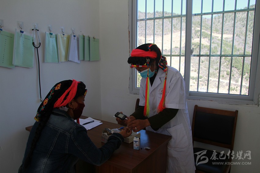 長納村黨員活動室外,一位婦女戴著口罩在曬太陽??吹焦P者來了,連忙站起來,笑著用嘉絨語向筆者打招呼。交談中筆者得知,她叫阿吉,今年54歲,前段時間由于血壓高,常常頭疼、頭暈,只能躺在床上。后來,村醫(yī)來到她家,為她測量了體溫,并帶來了降壓藥,服藥后她的癥狀有了很大改善。她今天到村衛(wèi)生站是來檢測一下血壓,順便買一些抗感冒的藥物。當筆者問及村衛(wèi)生站醫(yī)生的情況時,她告訴筆者,村衛(wèi)生站的這名醫(yī)生是一位醫(yī)術(shù)高超的醫(yī)生,也是一位值得信賴的醫(yī)生,更是一位讓人放心的醫(yī)生。