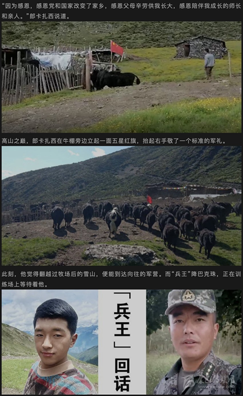 三段視頻,六百多條留言,近兩千萬(wàn)次播放,一個(gè)藏族少年的軍旅夢(mèng)在網(wǎng)絡(luò)上熱烈綻放,而農(nóng)牧區(qū)許多青年的軍旅夢(mèng)也就此被點(diǎn)燃,忠勇大愛(ài)的“血脈”在康巴高原傳承! (本網(wǎng)記者 肖宵 整理)