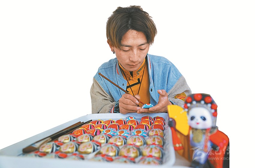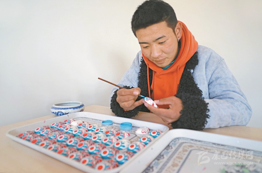 本著自主自愿的原則,教學(xué)班結(jié)束后,65名藏族青年主動(dòng)加入扶貧彩繪實(shí)訓(xùn)班,成為項(xiàng)目的第一批學(xué)員?!皩?shí)訓(xùn)期間不需要交任何費(fèi)用,還包吃住。我對(duì)畫京劇臉譜很有興趣,我們第一個(gè)月學(xué)習(xí)繪畫基本功,第二個(gè)月開(kāi)始,根據(jù)成品質(zhì)量,就可以計(jì)件得酬勞,學(xué)習(xí)期間我每月能掙500多元?!壁雠f(shuō)。