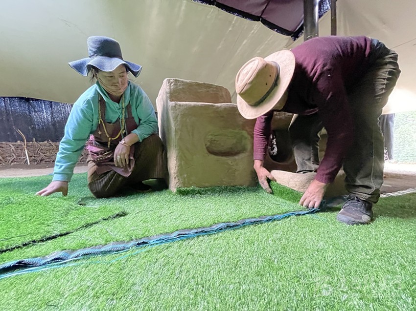 翁丹透露,“現(xiàn)階段,除了嶺·格薩爾牧俗文化藝術中心還在全力布設展陳品外,嶺·格薩爾藥泉小鎮(zhèn)、嶺·格薩爾覺如牧場全面收尾。整個體驗園預計7月中旬投入使用。”