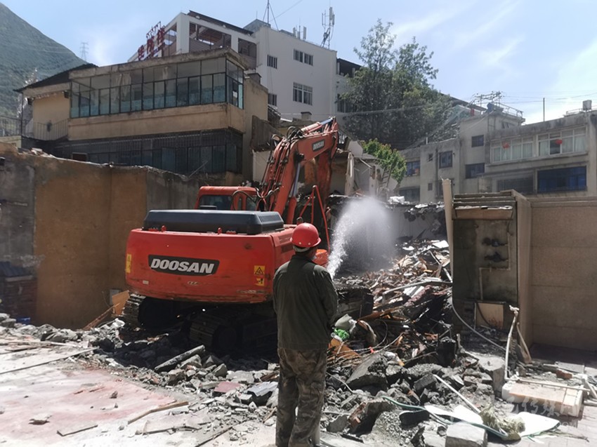 4月15日,在瀘定縣舊城區(qū)改造施工現(xiàn)場,一輛挖掘機揮舞著長臂,只見一棟破舊的老屋轟然倒地……“拆得好!這些老房子以前緊挨著馬路,拆除后把人行道讓出來了,路更寬敞了,我們走路也更舒心了?!眹^的群眾拍手稱贊。