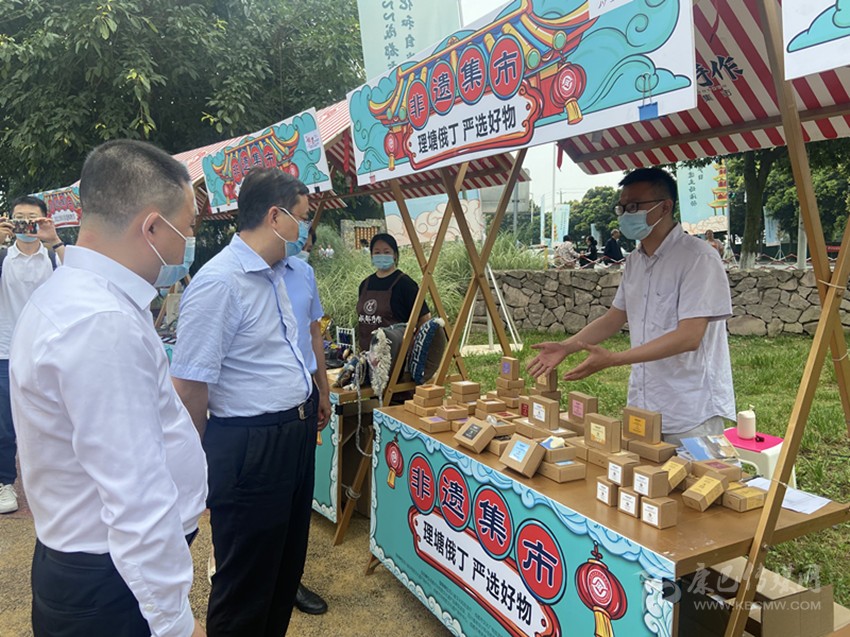 羅遵國在成都市2022年“文化和自然遺產日”非遺主場活動中推銷俄丁村特色農副產品。