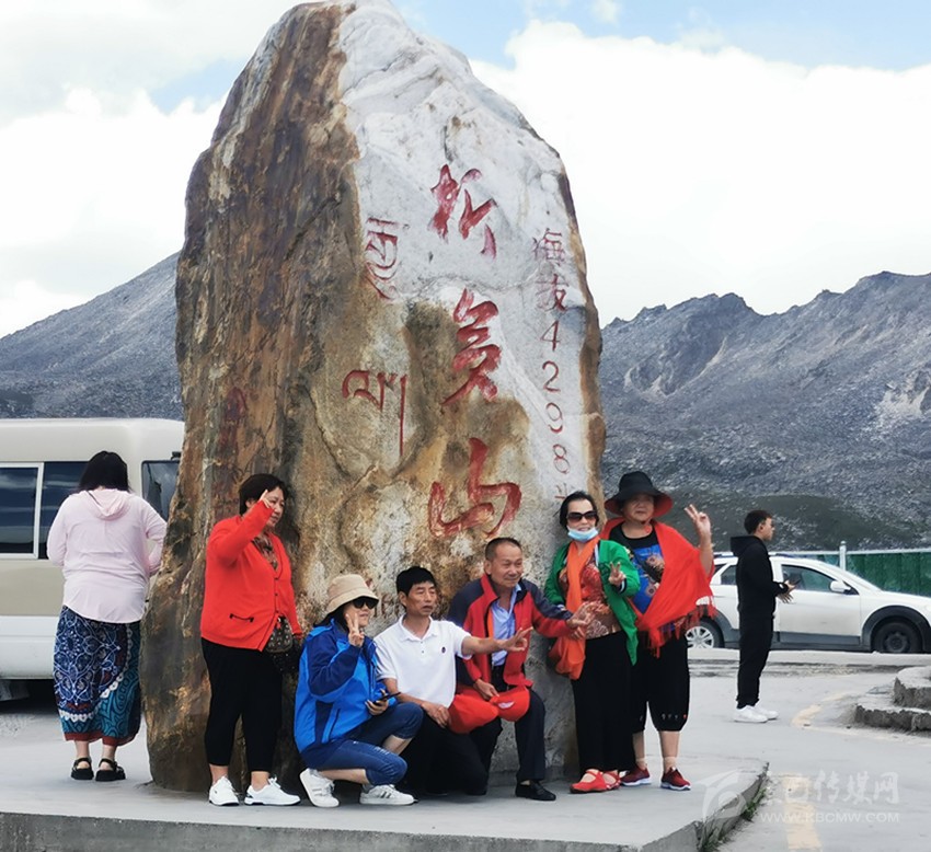 游客打卡折多山。