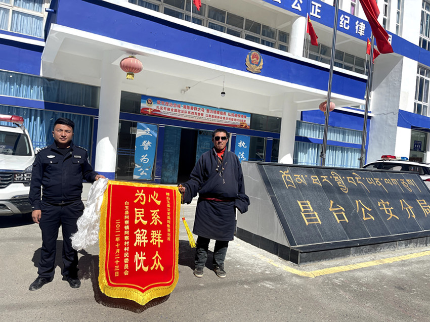 白玉縣阿察鎮(zhèn)因海拔較高,即便現(xiàn)在已是三月末了,也遲遲感受不到一絲春的暖意。但在昌臺公安分局內(nèi),一面面鮮艷的錦旗卻讓整個空間有了溫度,一面印有“心系群眾 為民解憂”的錦旗吸引了我們的注意。根呷扎西介紹,為了感謝民警們解決了阿察村3名群眾身份證沒能辦理的“老大難”問題,阿察鎮(zhèn)阿察村黨支部書記章巴和村民們一起送來了這面錦旗。