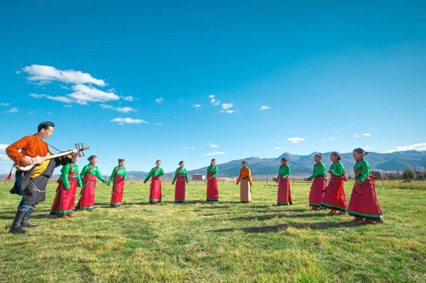 澤仁彭措是位“半路出家”的鄉(xiāng)村音樂教師?!靶r(shí)候就對(duì)音樂特別感興趣,但那時(shí)候家里沒條件,很難有機(jī)會(huì)系統(tǒng)地學(xué)習(xí)音樂知識(shí)?!遍L大后,澤仁彭措成為一名教師。工作之余,他始終保持著對(duì)音樂的熱愛,自學(xué)了札木聶和弦子等樂器。