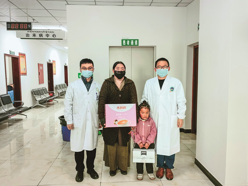 治療同時(shí),詹宇豪還十分關(guān)注朵朵的心理健康。詹宇豪和醫(yī)療團(tuán)隊(duì)其他隊(duì)員經(jīng)常鼓勵、安慰朵朵,送她小禮物和營養(yǎng)品,向家屬宣教康復(fù)注意事項(xiàng)。了解到朵朵的家庭情況后,詹宇豪和醫(yī)療團(tuán)隊(duì)醫(yī)師王巨峰積極協(xié)調(diào)溝通,向巴塘縣中藏醫(yī)院提出申請,減免了朵朵的治療費(fèi)用,并通過千島湖安徽商會募集到6000元善款,用于朵朵的后續(xù)治療和生活。