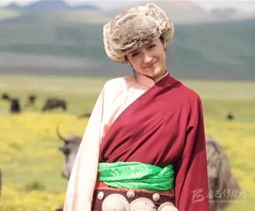 藏衣,一般都具有長袖、大襟、腰寬等特點。根據(jù)用料的不同可分為羊皮藏袍,皮毛藏袍和布料藏袍等三種藏袍。皮毛藏袍是用老綿羊皮鞣好縫制的,縫制好的皮襖叫“雜巴”。腰系長長的紅色繭綢,身后打一個結,腰帶的側旁佩掛一個嵌有珊瑚的銀制奶鉤.奶鉤最早為勞動工具,后來逐漸演變?yōu)檠b飾品。