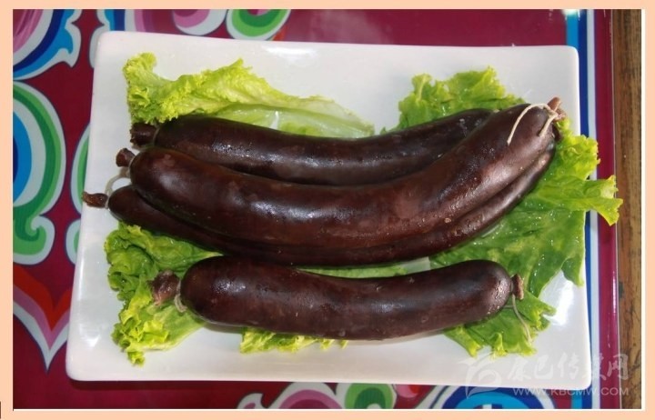血腸:是將宰殺牲畜的血與玉米面或麥面、蕎面混合在一起,再加以食鹽、花椒面等香料提味,然后將混合物裝進(jìn)洗干凈的牲畜腸里,人鍋煮熟即可。吃的時(shí)候,或蒸或烤:蒸則腸衣柔軟很有嚼頭;烤則腸衣香脆可口。因?yàn)檠c不能長(zhǎng)時(shí)間保存,所以吃血腸的時(shí)間一般在宰殺牲畜的幾天內(nèi)。