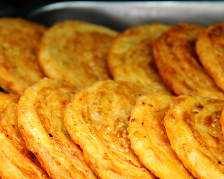 康定鍋魁別具風(fēng)味,馬市上清真寺對(duì)面,文昌廟(原回小校舍處)坎下鄭家的鍋魁全城聞名。品種有混糖鍋魁、油旋子、方方酥、糖鍋魁等,香酥甜俱佳,至今讓人回味。當(dāng)年福音堂(在今州委地段)前有小院壩,下接老陜街,常年有喇嘛三五或二三十坐于街沿,面前置二三大鍋魁售賣。人稱此為“貢加肆”(藏語賣鍋魁地),其鍋魁泡而微甜可口,不少人前往購食。還有“陜鍋魁”,爐城聞名。是一個(gè)操陜西口音的五十開外漢子,背一背大餅,沿街叫賣:“陜鍋魁”。其大餅軟嫩,綴以蔥花,入口清香喜人,北方大餅,素享盛名,“陜鍋魁”盡得其妙。人們聞其陜音,都去購買。
