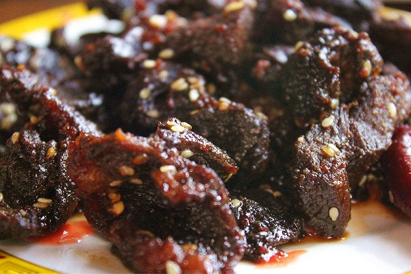 3500米以上地區(qū)這些地方生長著許多野生藥種如貝母,蟲草等,耗牛常食這些藥材,其肉鮮美無比,殺后可炒紅燒,清燉或涼曬成干巴等,其味獨(dú)特,吃耗牛肉在迪慶,實(shí)在是一種享受。并可在市場購買干巴,肉松等作饋贈青朋好友的禮品。牦牛肉可以粘辣椒油,味道仍然鮮美??刀ǖ呐H獠粌H有牦牛肉,還有熏牛肉等等,比起其他康定特產(chǎn)更是別具一番風(fēng)味。