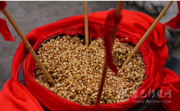 嘉絨語稱“恰鹵”。咂酒是青稞釀制而成的。首先取一定數(shù)量的青稞粒,一般5斤、8斤或10斤,在大鐵鍋中用水煮成八成熟后,放在簸箕里晾開,待冷卻后放上一定比例的酒曲,合勻,又裝入大鐵鍋中發(fā)酵三至四天,待聞到酒香味后,裝入壇中并加水,放置一天以上后,即可取汁食用,這個汁就是咂酒。咂酒味甘甜淳厚,十 分爽口,看似不醉人,但有的甘甜之中略帶苦澀,說明酒勁足,不勝酒力者應(yīng)少飲為宜。曾有人寫《飲咂酒詩》說:“成石雜糧一甕收,王侯到此也低頭,五龍抱住 撐天柱,咂盡黃河水倒流”。充分展示了咂酒的魅力和飲咂酒的那種愜意。境內(nèi)巴底、半扇門的上半鄉(xiāng)、太平橋鄉(xiāng)一帶的群眾喜愛煮咂酒,平日,家家都備有咂酒,親朋間禮尚往來、人情世故都送咂酒。喝咂酒是當(dāng)?shù)氐囊淮罅?xí)俗。《章谷屯志(略)》記載了清朝后期宅壟土屯區(qū)的飲食習(xí)俗時說:“夷人(封建統(tǒng)治者對藏族的貶 稱)寨中置巨甕或木桶,富者大銅瓶盛酒,于內(nèi)植竹竿十余枝,跌坐于地互相吸飲,不杯杓勸酧(酬),無餚核(指熟食的魚肉干果),惟各布豬膘、牛肉、‘得木 鳥’(火燒子饃饃),醉飽而散”?,F(xiàn)在,巴底鄉(xiāng)、半扇門的上半鄉(xiāng)、太平橋鄉(xiāng)的大多數(shù)村寨仍然保留著這些習(xí)俗。在節(jié)日或慶典之時,在大壩子中間放一個大的壇子或木桶,里面盛滿含有酒糟的咂酒,然后插入麥桿數(shù)根,眾人圍個大圓圈跳鍋莊,口渴時依次吸之;或一人手持葫蘆,里盛咂酒,在眾人中依次轉(zhuǎn)之;或眾人盤腿 圍坐,傳一壺咂酒,稱喝“轉(zhuǎn)轉(zhuǎn)酒”。