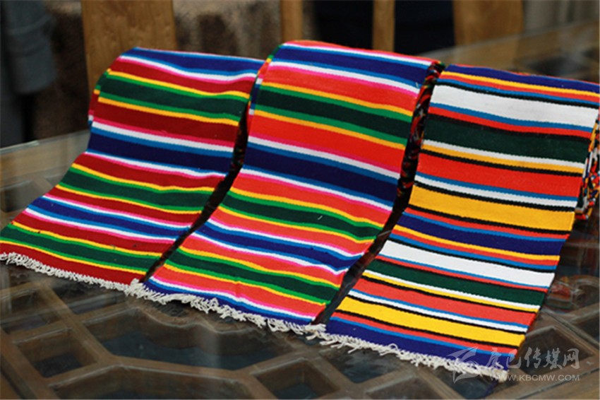 鑲邊時(shí),根據(jù)需要裁為條狀,縫子大襟、下擺的一周。其花型分十樣錦與十字花兩種。十樣錦又叫條花或邦丹,就是用彩色緯紗,織成紅、綠、黃、紫、藍(lán)、白等不同顏色、寬度相等或不等的彩條,每幅圖案用8個(gè)左右顏色排列對(duì)稱循環(huán)。十字花又叫擋子花,就是在十樣錦彩條基礎(chǔ)上,于每個(gè)循環(huán)間以5厘米左右的白色或黃色彩條格隔開(kāi),格內(nèi)印以4枚或5枚紅藍(lán)或紅紫色十字做點(diǎn)綴。棉紗氆氌的顏色、規(guī)格及用途同于毛花氆氌,但價(jià)格使宜,適于低擋衣料鑲邊之用。氆氌曾是西藏主要貢品,以扎朗、浪卡子、江孜、芒康等地產(chǎn)的最為著名。