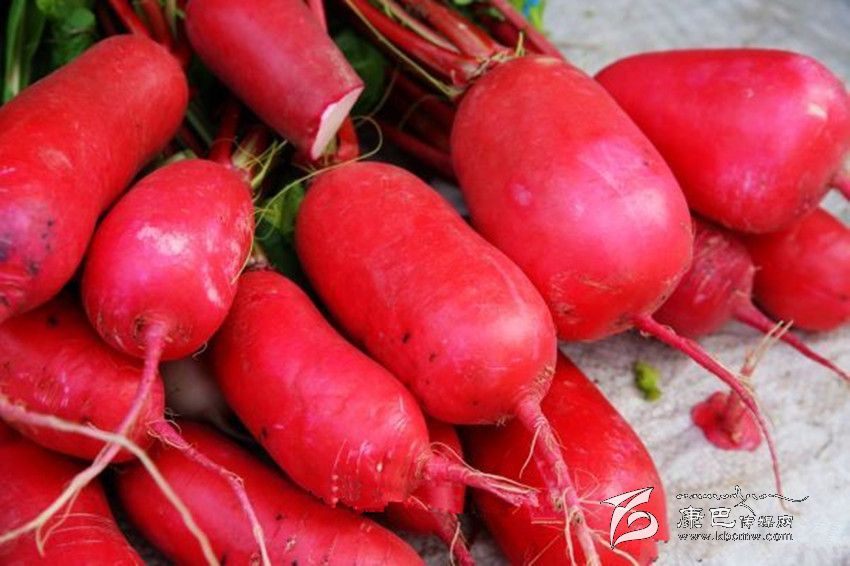康定縣種植紅皮蘿卜歷史悠久,《康定縣志》(1995年版)記載民國18年設(shè)于城郊的西康省農(nóng)事試驗(yàn)場及1928年建立的西康省農(nóng)業(yè)改進(jìn)所,都曾對其作過引進(jìn)、試種,和園根(蕪菁)、洋芋并列享有康定“三寶”之譽(yù)??刀t皮蘿卜除含葡萄糖、蔗糖、果糖、多縮戊糖、粗纖維、維生素C、礦物質(zhì)和少量粗蛋白外,還含多種氨基酸,淀粉酶含量很高,肉質(zhì)致密,色呈淡綠色,水多味甜、微辣,是著名的生食品種,人稱“水果蘿卜”。