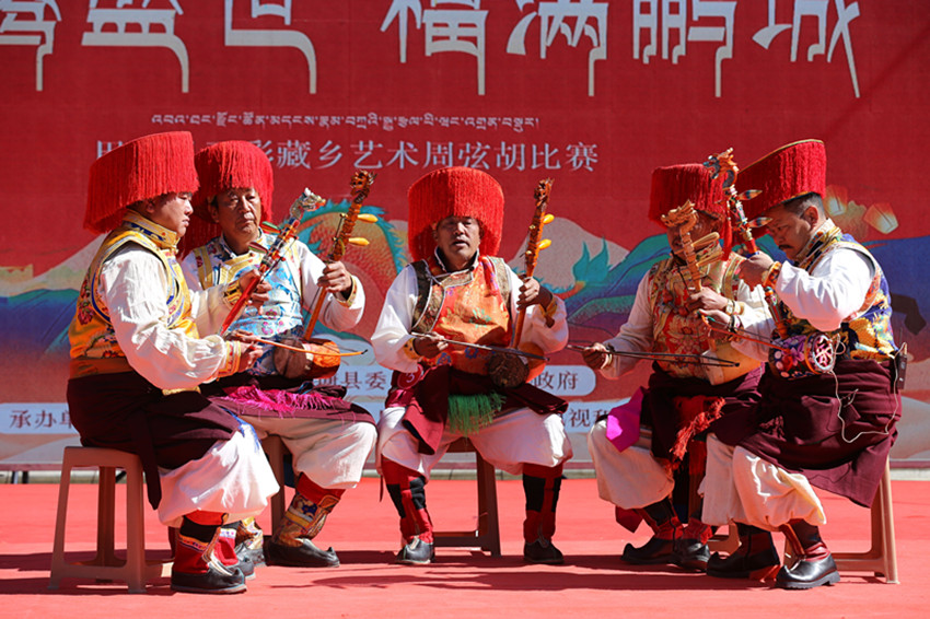 2月11日,巴塘縣2024年弦胡演奏大賽在中山廣場舉行,全縣17個(gè)鄉(xiāng)鎮(zhèn)的弦胡高手身著盛裝,同臺(tái)競技,一場傳統(tǒng)與傳承相融的新春文化盛會(huì)就此拉開。 李穎/文 格桑澤仁/圖