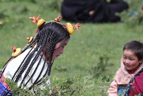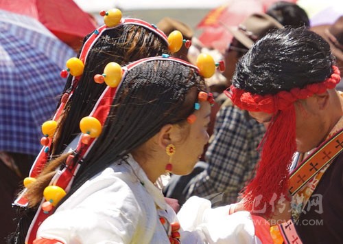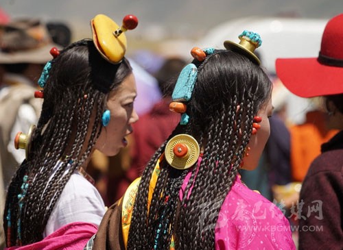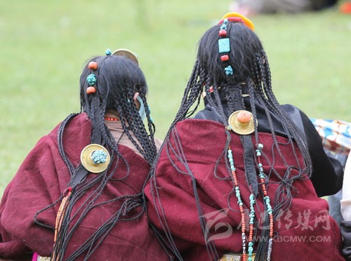 其實藏族人的審美很多同漢族不一樣,參加一場活動她們會在頭發(fā)上占去大量的時間,編成非常多的辮子。