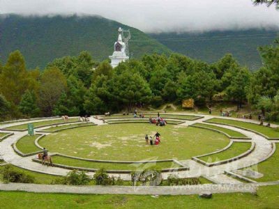 “跑馬溜溜的山上,一朵溜溜的云喲?!币磺刀ㄇ楦枋沟门荞R山揚名世界。跑馬山,藏名:拉姆則,意為:仙女山。因山頂有湖泊五色海,故又名:五色海子山。跑馬山主要景觀為:五色海、吉祥禪院、跑馬坪、浴佛池等。為了紀念佛祖釋迦牟尼的誕辰日,每年的陰歷四月初八,當?shù)厝罕姸紩谂荞R山舉行盛大的紀念活動,當?shù)胤Q之為“四月八轉(zhuǎn)山會”,并同時在跑馬山上舉行賽馬活動,熱鬧非凡。